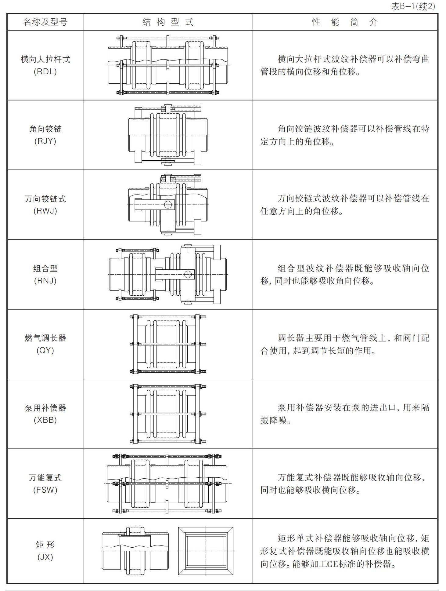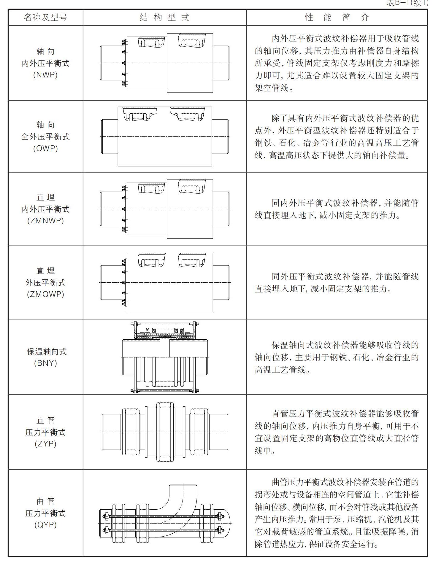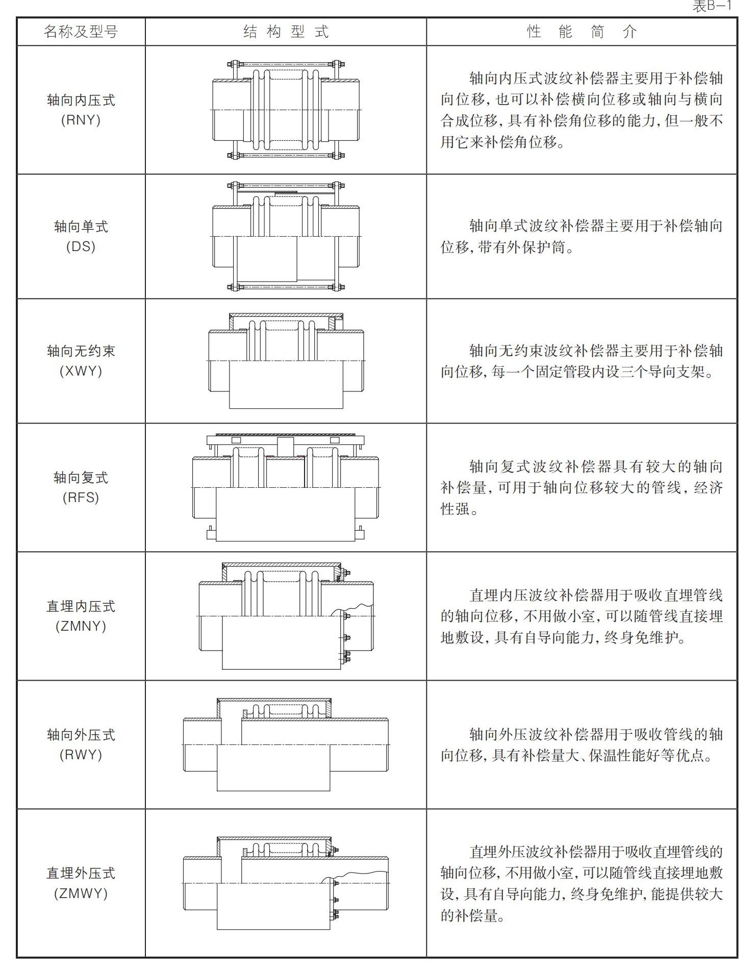 现将我公司大量生产的几种波纹补偿器的结构形式列表,