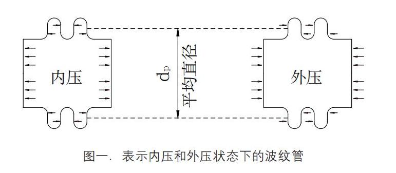 由图一可以看出,在内压情况下,波纹管的波纹被推开,使波纹管伸长,该压力推力作用在管线固定支架或系统设备上;而在外压情况下则相反,波纹被压缩,波纹管缩短,但压力推力仍旧作用在管线固定支架上或系统设备上。